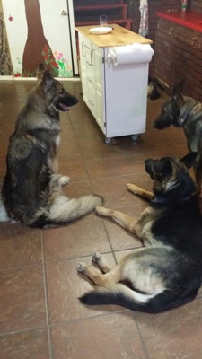 Below are pictures of our AKC German Shepherd Dogs-- Max (our black and tan Plush Coat male), Noelle, Jingles and Shatzi (our girls) They live in our home with us, as part of the family. Enjoy the pictures!