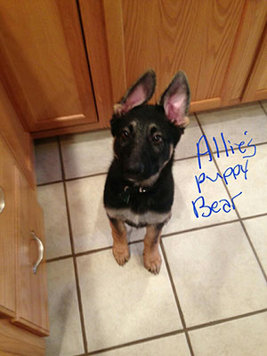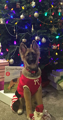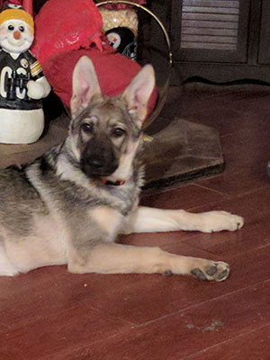 Above is JINGLE BELLS, at 4 months old. She is a Sable color. We are excited to see her grow !
