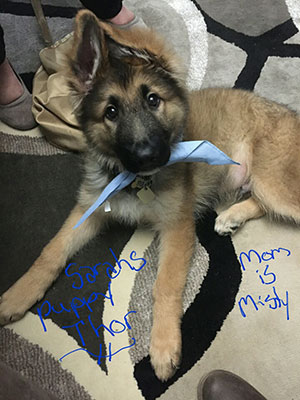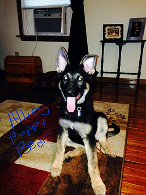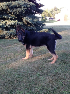 Below are pics of one of Siege and Reicht's pups that the owners sent to us