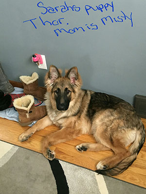 Picture Below is one of Misty's Pups YODA in her new home.