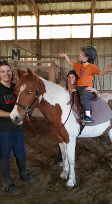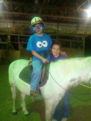 Prices for these lessons vary depending on the length of the lesson and the amount of assistance required. Some students can ride a full hour with only one instructor needed $35.- Others do better with just a half hour $25.- with one instructor. Or for a rider needing the assistance of two instructors the cost is $35.- for a half hour. We even do slightly shorter lessons for those who can't ride even the 1/2 hour due to attention or physical problems.